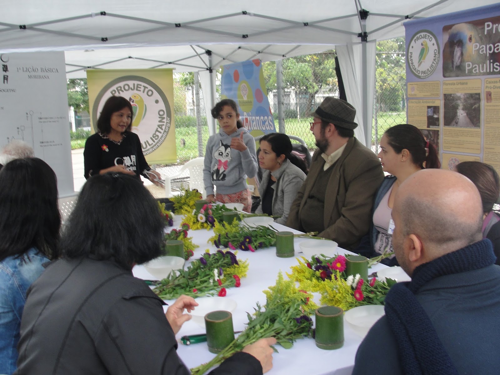 Dentre os serviços disponibilizados, incialmente foi realizada uma oficina de Ikebana com a Professora Emiko, da Associação Brasileira de Ikebana, após a oficina ficaram os lindos arranjos (Ikebanas) criados pela oficina para decorar o espaço e foram disponibilizadas informações sobre projetos do Instituto como o Papagaio Paulistano e a Calçada Literária, foram distribuídos preservativos de acordo com projeto Amar não tem Limites, ligado a DST/HIV/AIDS.