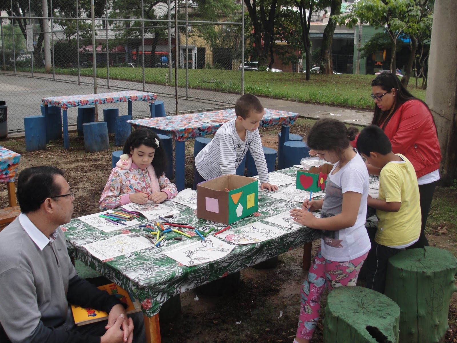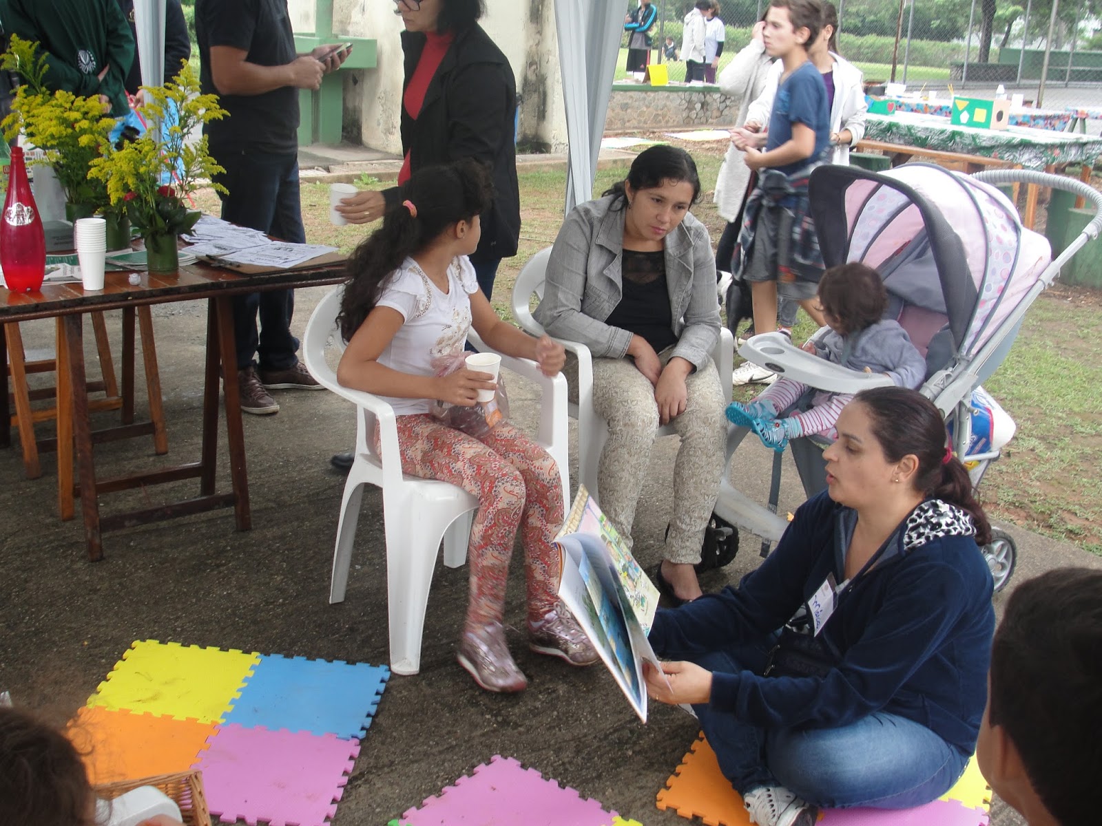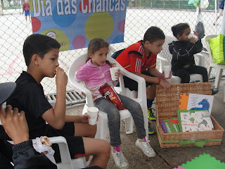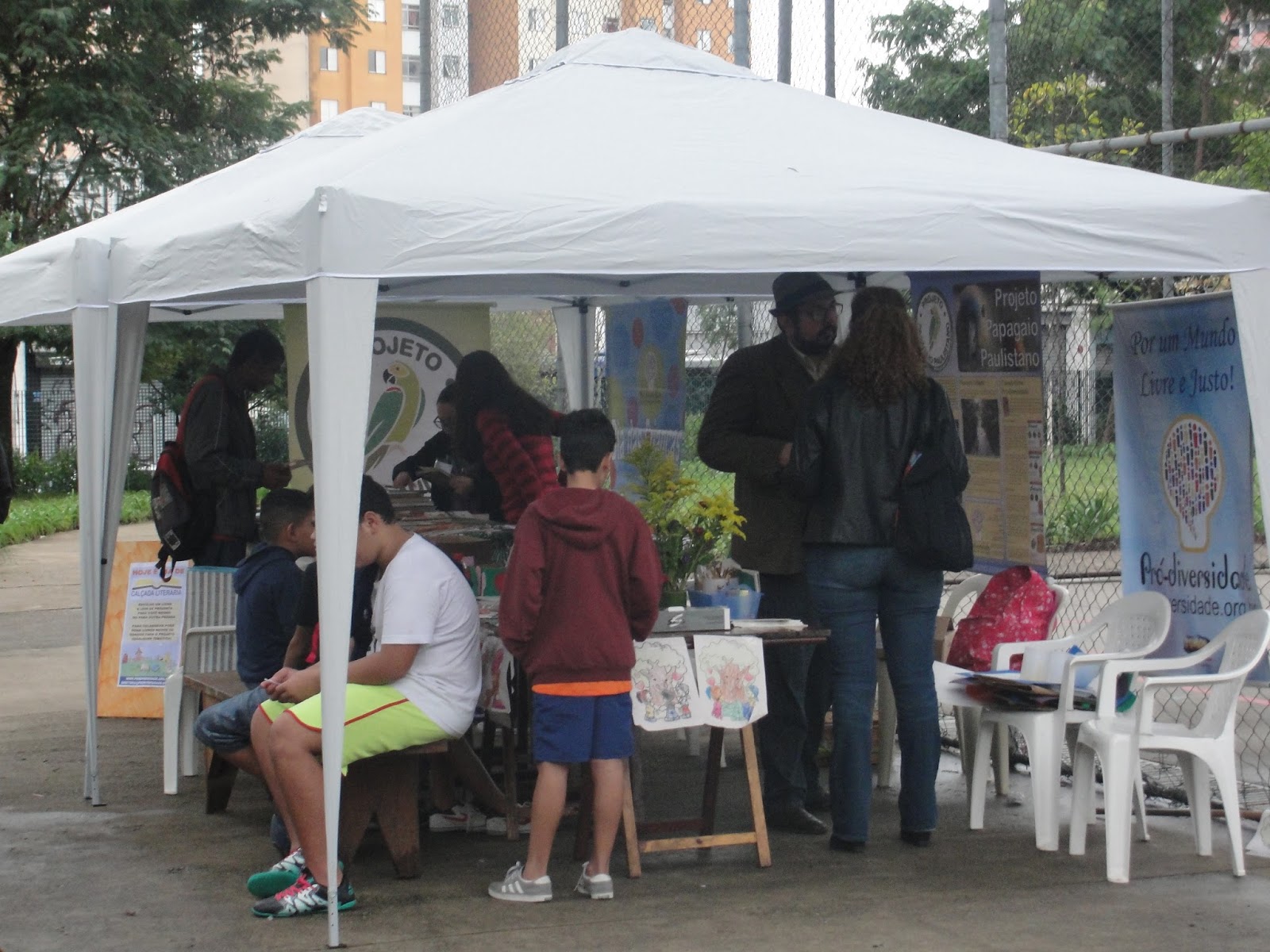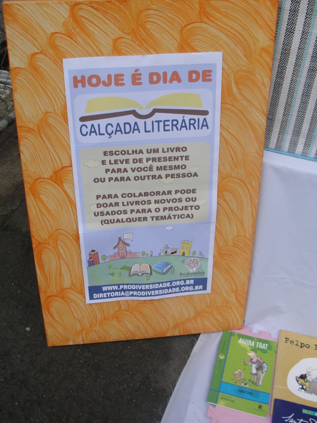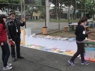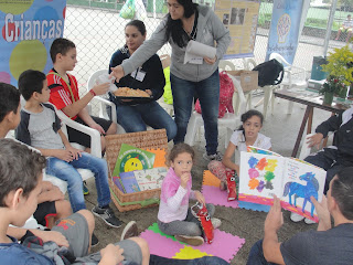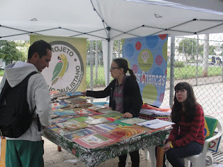 Dentro da Calçada Literária , além da distribuição de livros, também oferecemos para as crianças Contação de histórias, pintura de desenhos, mosaico de e.v.a. (atividade colaborativa na qual as crianças fizeram quadros que serão utilizados no parque) recebendo o apoio nas atividades e na tenda de nosso parceiro Associação Reciclázaro (Espaço Gasômetro) que também ofertou a inscrição para cursos e atividades gratuitas aos participantes do evento.