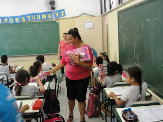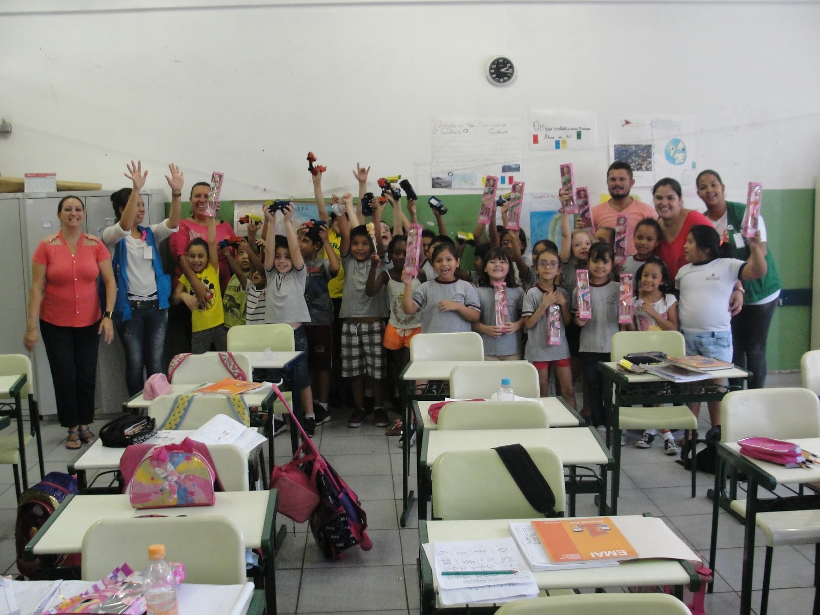 Seguem algumas fotos da distribuição dos brinquedos para os alunos, confiram a alegria da garotada: