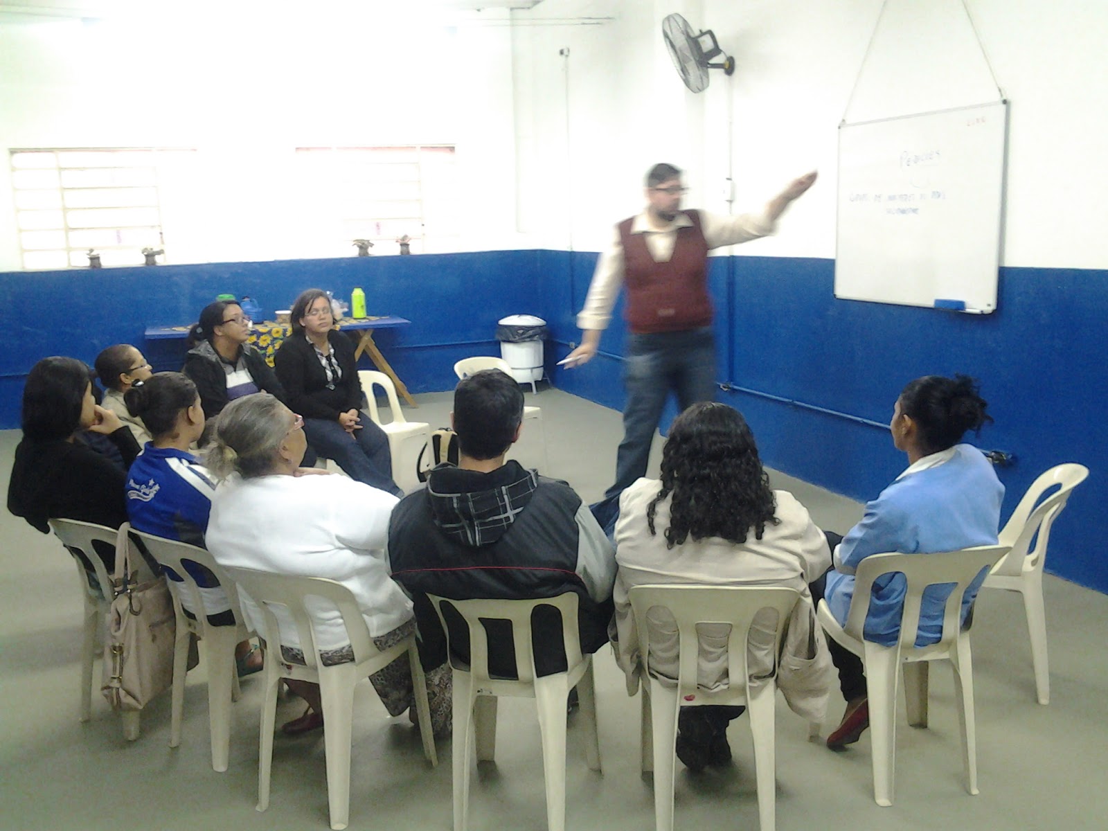 Nesse primeiro encontro o diretor presidente Péricles Formigoni fez uma breve apresentação do como funciona o projeto para os assistidos e juntamente com eles procurou saber qual era a visão que eles tinham do bairro, enquanto isso os filhos brincavam no espaço kids.