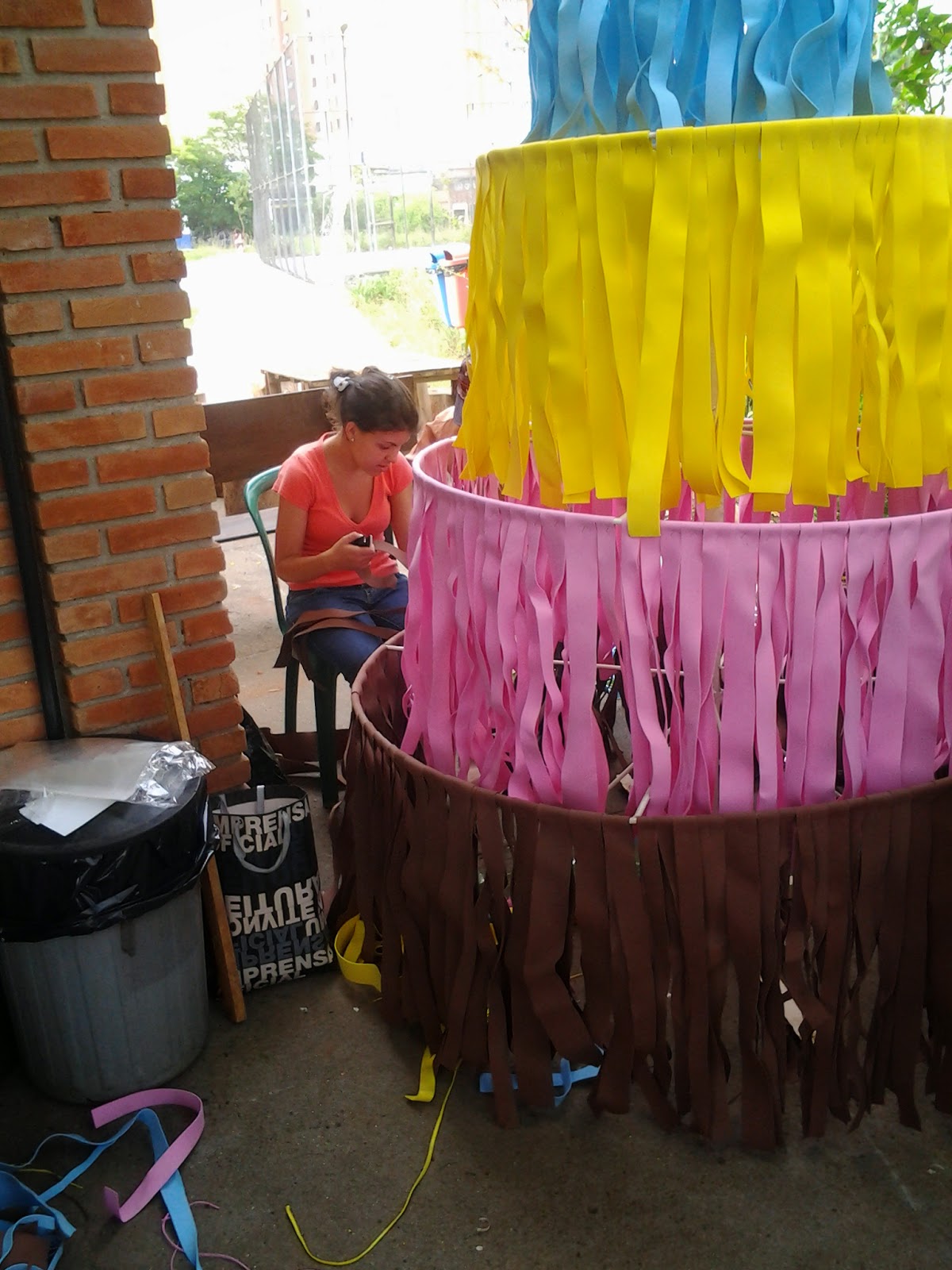 Assim para decorar a arvore surgiu o pequeno inconveniente de não haver recursos para comprar decoração natalina tradicional, então mais uma vez tivemos que apelar para a criatividade e trabalho em equipe e funcionários do parque e colaboradores foram pedir nas empresas ao redor retalhos para a realização da árvore, como ninguém nos deu nada (o que em nada me surpreendeu) pegamos no lixo industrial sacos e sacos de retalhos de EVA cujo único destino seria “sujar” o nosso meio ambiente. Marcamos um dia para montar a árvore como apresentamos: